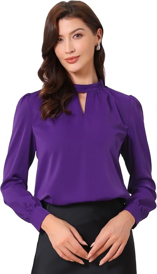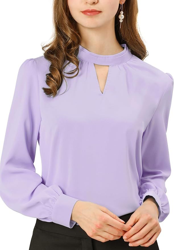 Allegra K Women’s Work Tops Dressy Casual Shirts Mock Neck Keyhole Business Casual Long Sleeve Blouse