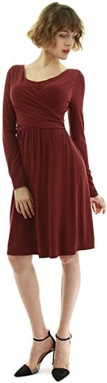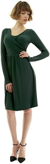 AmélieBoutik Women V Neck Crossover Long Sleeve Ribbed Dress