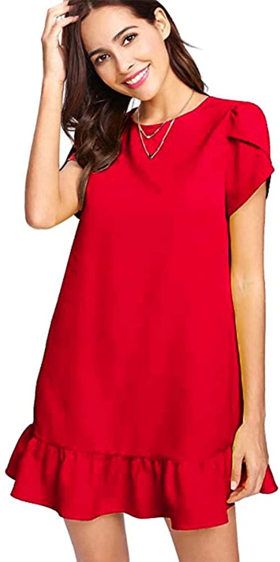 【Material】97% Polyester,3% Spandex;Soft and light material,breathable,not see through,women ruffles dress/summer dress/easily dress up or dress down.Notice:1 pcs women ruffles hem dress,without necklace.