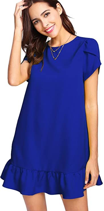 【Feature】The ruffle hem dresses with round neck,petal short sleeve design,summer dress/short sleeve dresses fit for elegant and lively young lady.