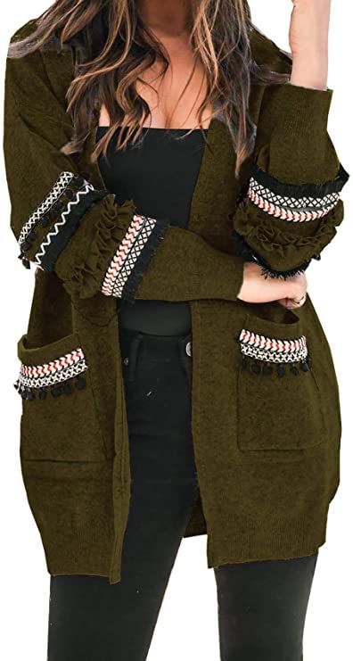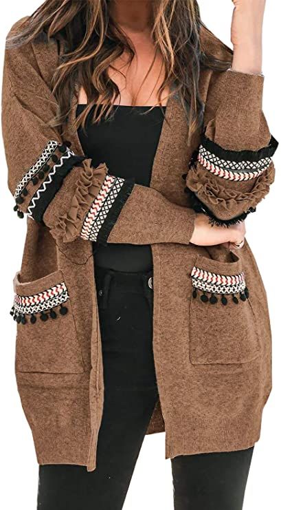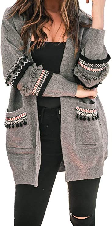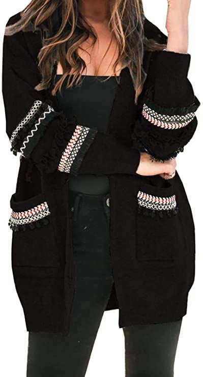 -Details of this Boho Knit Sweater Tops: Full Sleeve,Open Front, Tassel Trim, Solid Color, Low Side Pockets