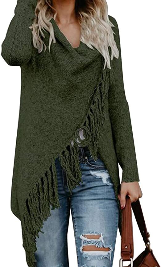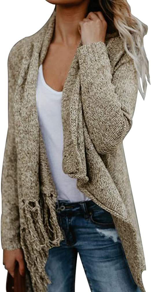 CEASIKERY Women’s Tassel Hem Sweater Long Cardigan Knitwer Pullover Poncho Coat