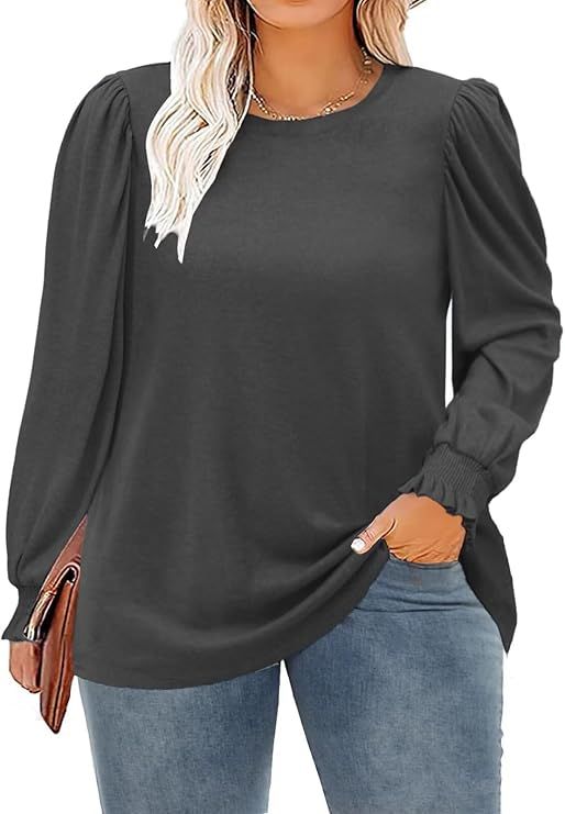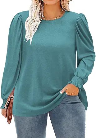 • Womens plus size tops feature pleated puff sleeve, smocked cuffs and classic crewneck, solid color and print design, stylish yet never out date