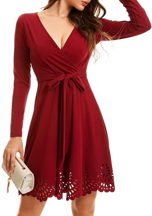 • Features:Midi flare cotton dress, Long sleeve,Cross neck,Cut Out ,A-line,Scalloped Hem ,perfect for Spring,Summer, Autumn and Winter