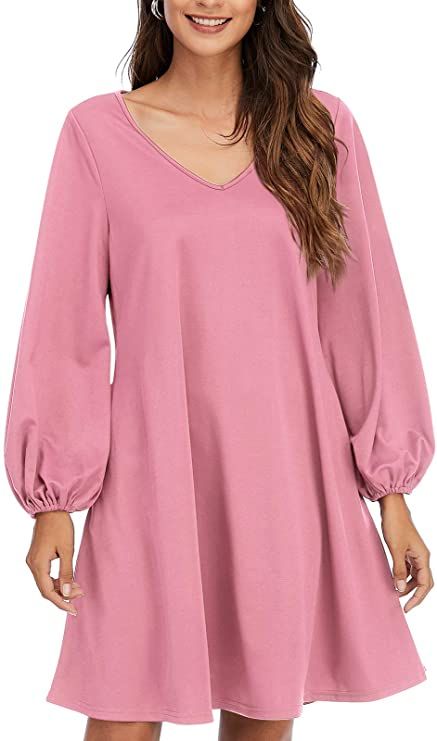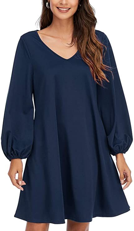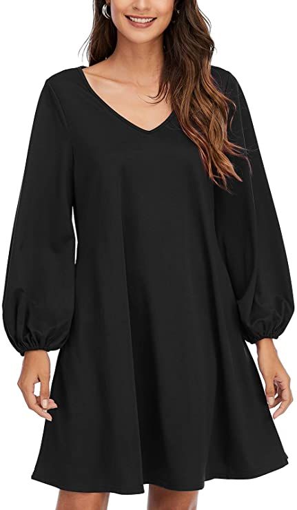 • Features: V neck dresses for women, lantern long sleeve, two hidden side seam pockets, swing hem, loose fit, casual tunic dress, simple and plain, can be easily dress up and dress down. Many solid color dresses available for your choice. Add to your wish list, we will update new color.