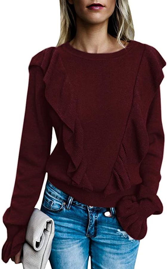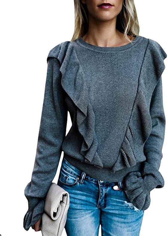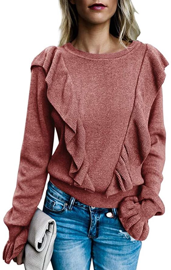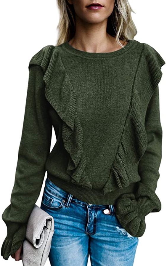 • Features: ruffle design, long sleeve, crewneck, casual style, regular fit
