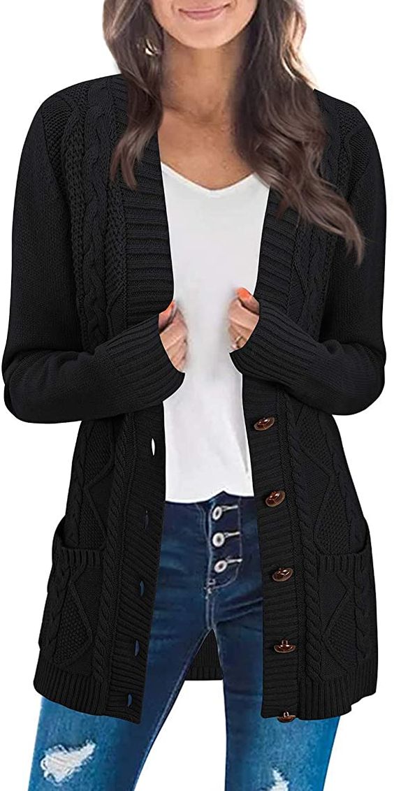 KILIG Women’s Cardigan Sweater Open Front Button-Down Long Sleeve Boyfriend Loose Outwear with Pockets