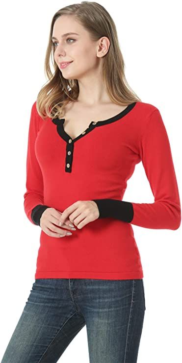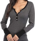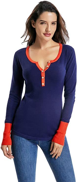 • ❤ Feature: Color trim, Single breasted, Y-neck, Henley sweater tops, Fitted, Sexy and elegant style.