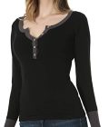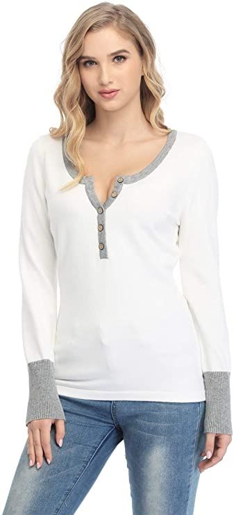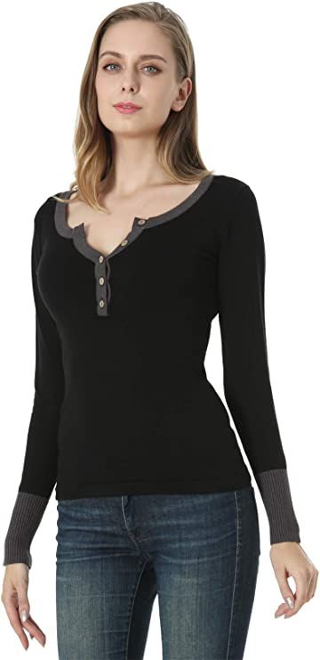 MISS MOLY Women’s Women Henley Color Trim Long Sleeve Sweater Knit Top