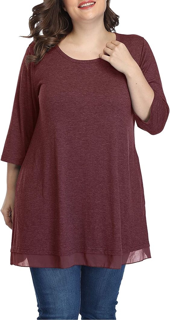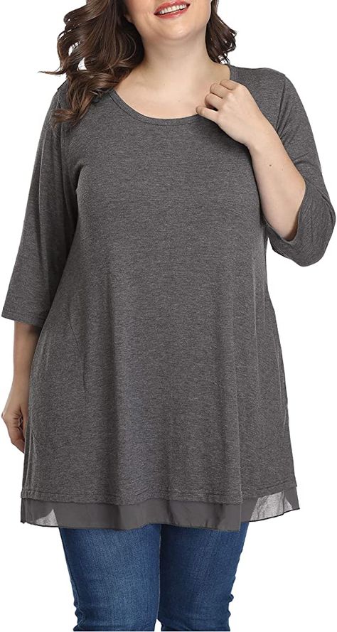 Shiaili Autumn Women’s Plus Size Tunic Shirts Pockets Flowy Tops