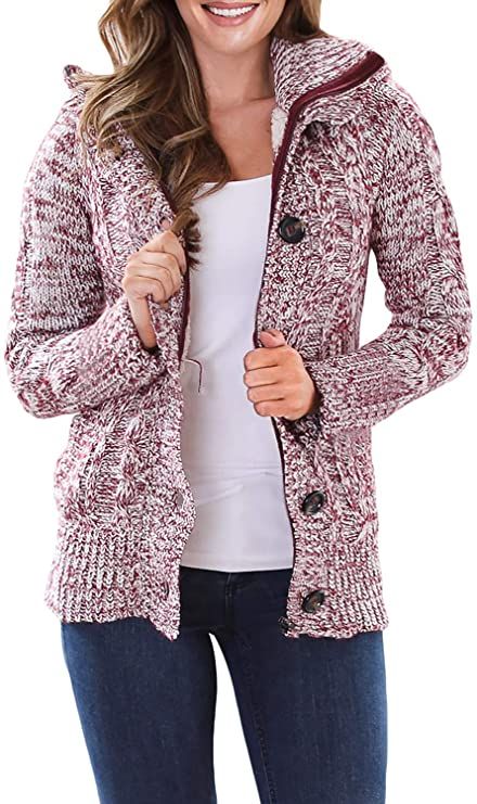Sidefeel Women Hooded Knit Cardigans Button Cable Sweater Coat
