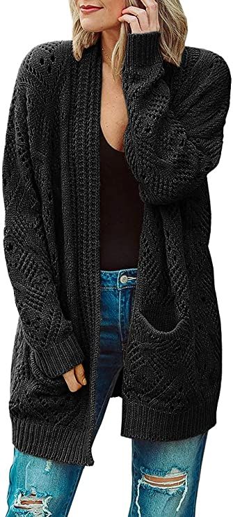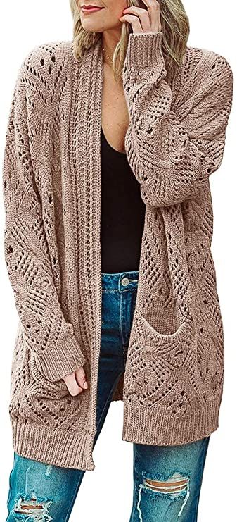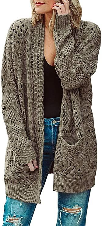 Womens Boho Open Front Cardigans Plus Size Oversized Long Sleeve Lightweight Knit Sweaters Outwear with Pockets