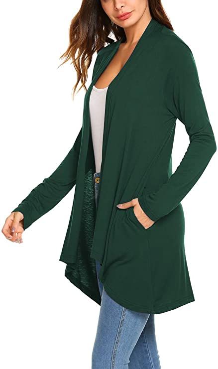 Women’s Casual Long Sleeve Open Front Lightweight Drape Cardigans with Pockets
