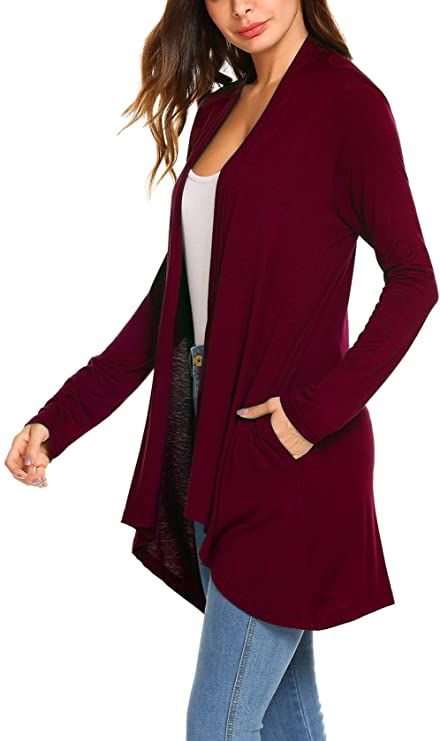 Feature:Long Sleeve / Pockets on both sides, you can put your phone / Open Front / High Low Hem / Casual Loose / Solid soft / Mid-long: back length to cover your legging-bottomed tush.